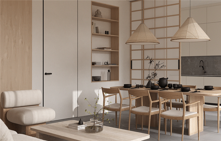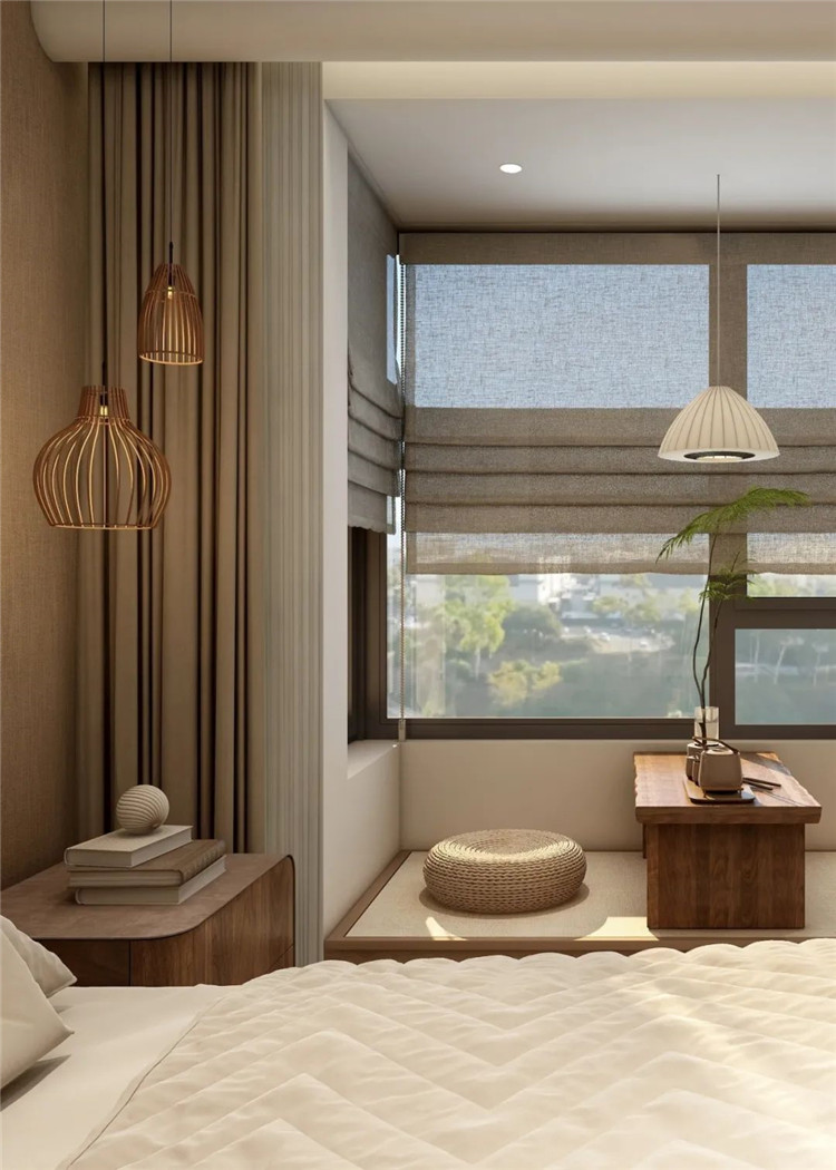 可以使用竹、木、藤等材質,家具的高度可以適量降低,營造室內的視野寬闊感的同時,也不要忘記在茶席附近預留電線插頭,方便煮茶。